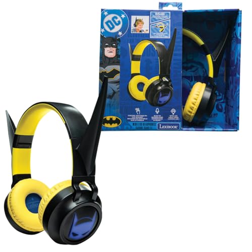 LEXIBOOK, Batman, vikbar upplyst Bluetooth och trådbundna hörlurar med 3D-design från Batman-universum och volymbegränsning, svartgul, HPBT015BATLXB