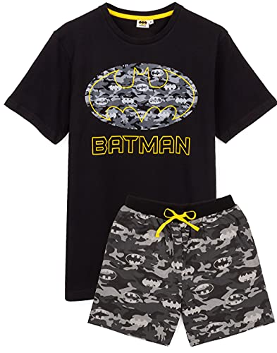 DC Comics Batman Pyjamas för män | alternativ för korta eller långa ben kamouflage pyjamas | vuxna superhjälte svart t-shirt och justerbar dragsko loungeepants present, Kort ben, L