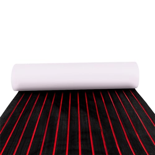 Garbenat Eva skum båt golvbeläggning 240 x 90 cm båtmatta halkfri golvbeläggning för båt, självhäftande båttillbehör, båtgolvmatta för yachtgolv, husbil, svart-röd söm