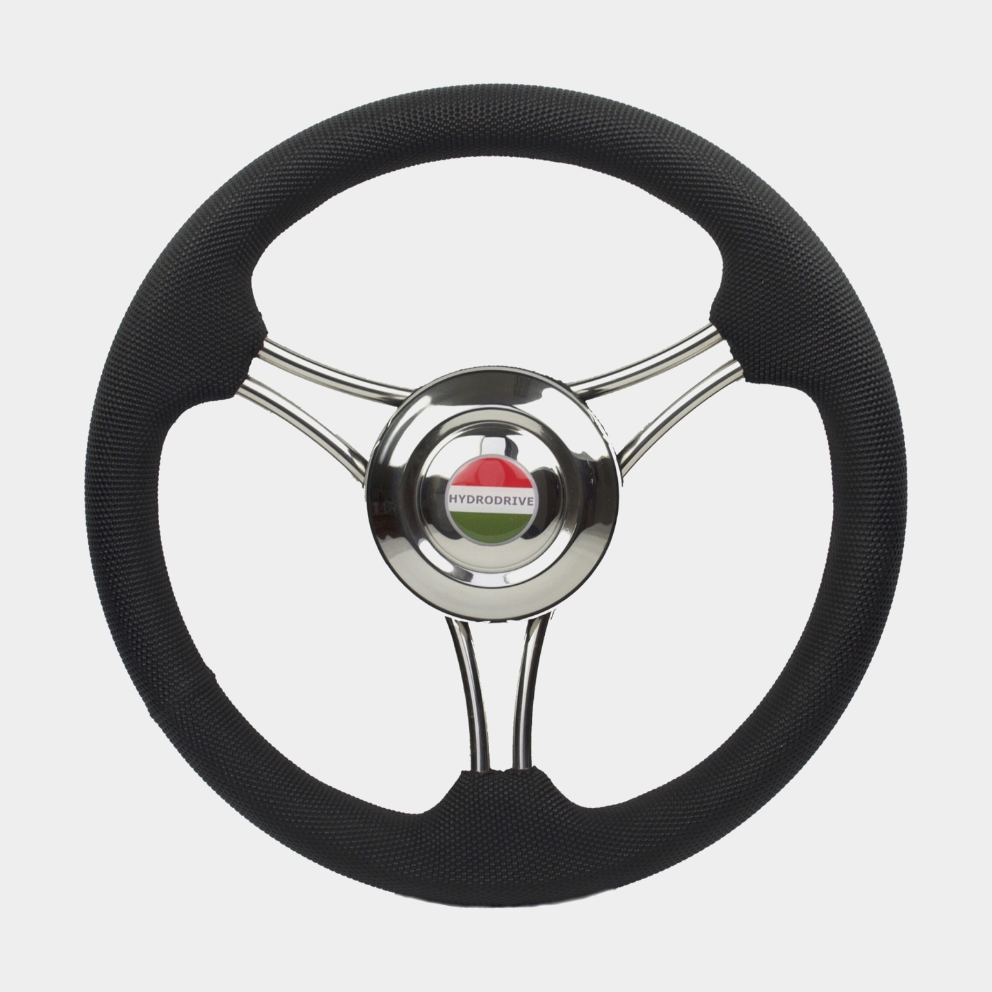 Hydrodrive Båtratt motorbåt 16121-VSB, rostfritt stål, Ø350 mm, med nav, passar 3/4″ (19 mm) rattaxel, svart/krom