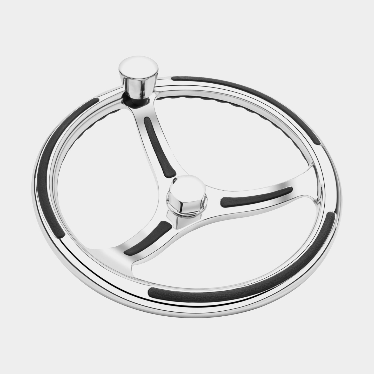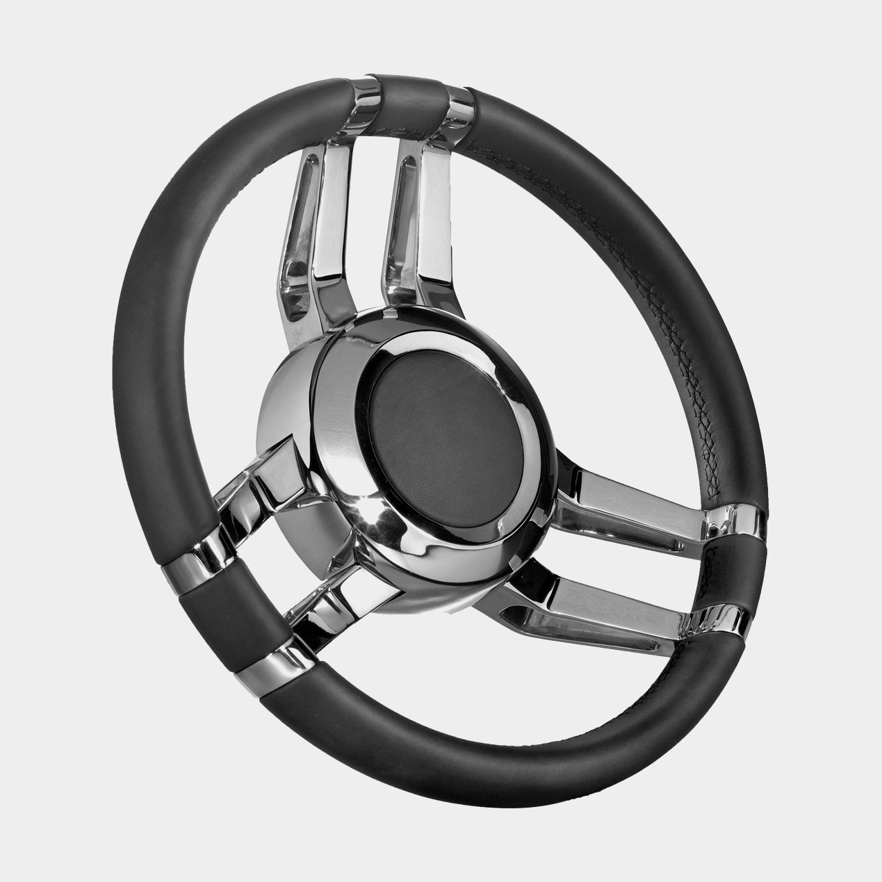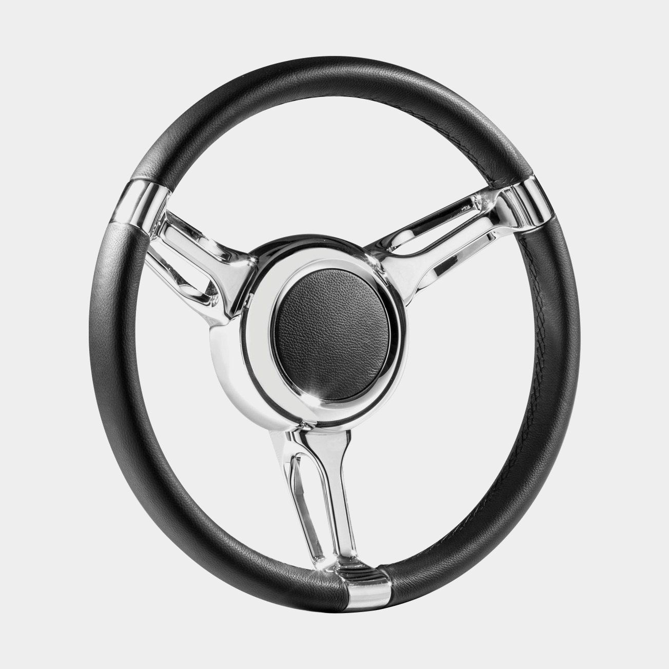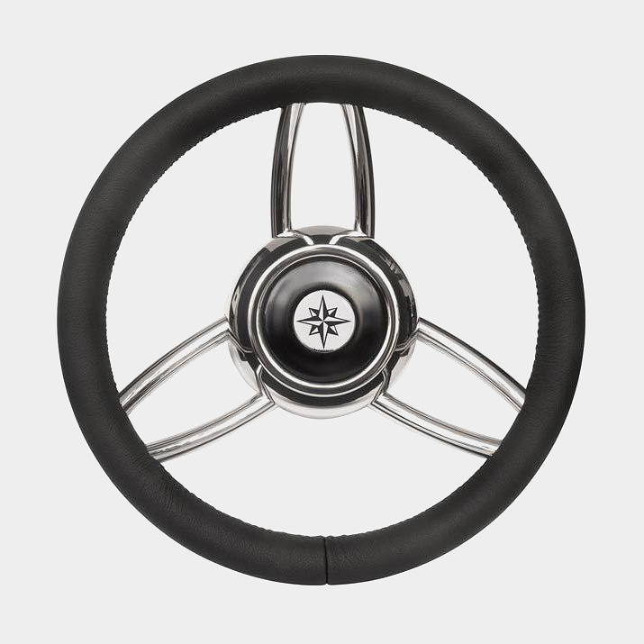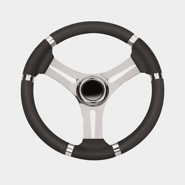 Savoretti Båtratt motorbåt Armando T26P, rostfritt stål med PU-läder/läderimitation, Ø350 mm, nav, passar 3/4″ (19 mm) rattaxel, svart/krom