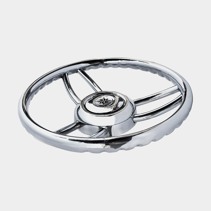 Båtratt motorbåt Savoretti Armando T26S, rostfritt stål, Ø350 mm, med nav, passar 3/4″ (19 mm) rattaxel, krom