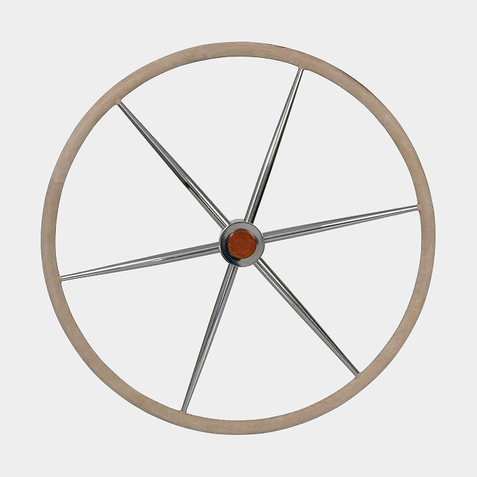 Lewmar Båtratt segelbåt Commodore, plan, rostfritt stål & älgskinn, Ø1020 mm, passar 1" (25 mm) rattaxel, brun/silver