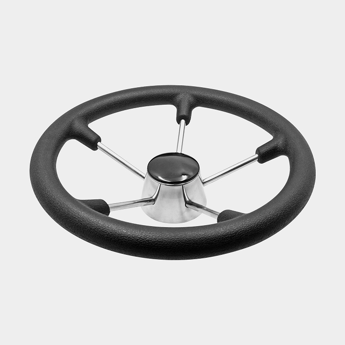 Båtratt motorbåt, rostfritt stål & gummi, Ø280 mm, med nav, passar 3/4″ (19 mm) rattaxel, svart