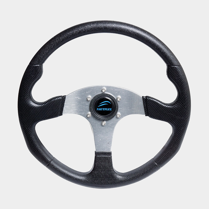 Båtratt motorbåt Nautflex, rostfritt stål & plast, Ø343 mm, med nav, passar 3/4″ (19 mm) rattaxel, svart/silver