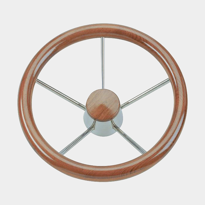 Båtratt motorbåt Savoretti Armando T4C, rostfritt stål & teak, Ø350 mm, med nav, passar 3/4″ (19 mm) rattaxel, krom/trä