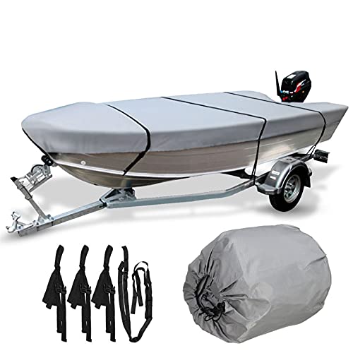 MSC Heavy Duty 600D marinkvalitet polyesterduk släpbart vattentätt båtskydd, passar V-skrov, treskrov, runabout båtskydd (grå, modell AA - längd: 30 cm (12 tum–14 tum) strålbredd: upp till 172 cm)