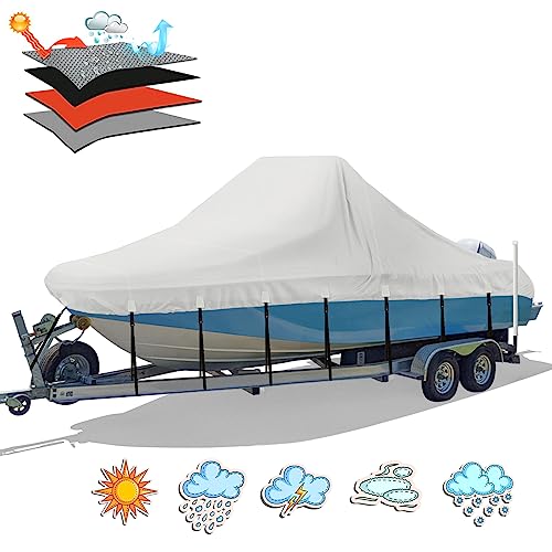 HAHASOLE Heavy Duty 800D PU vattentätt båtskydd, 23-24 tum släpvagn marin kvalitet polyesterduk, passar 7 – 7 m V-skrov, treskrov, fiskebåt, runabout, Pro-Style basbåt med åtdragningsrem