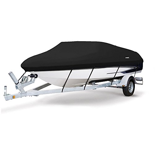 MSC Heavy Duty 600D marinkvalitet polyesterduk släpbart vattentätt båtskydd, passar V-skrov, Tri-skrov, Runabout båtskydd (modell F – längd 19–20 tum strålbredd: upp till 243 cm, svart)