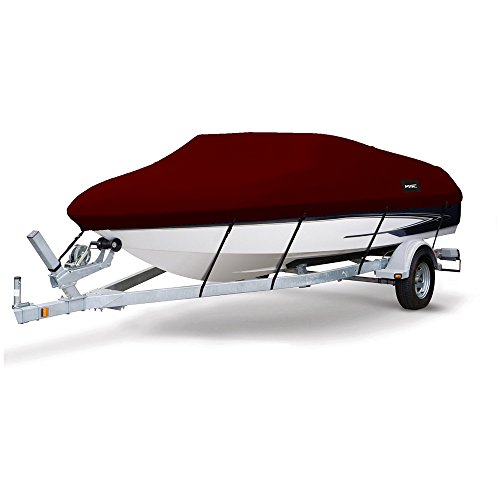 MSC Heavy Duty 600D marinkvalitet polyesterduk släpbart vattentätt båtskydd, passar V-skrov, treskrov, runabout båtskydd (vinröd, modell AA - längd: 30 cm (12 tum–14 tum) strålbredd: upp till 172 cm)