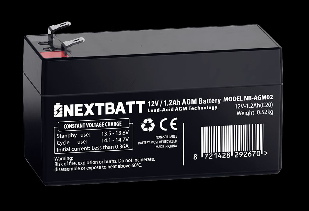 NEXTBATT AGM-batteri 12V 1.2Ah – 97x43x52 mm