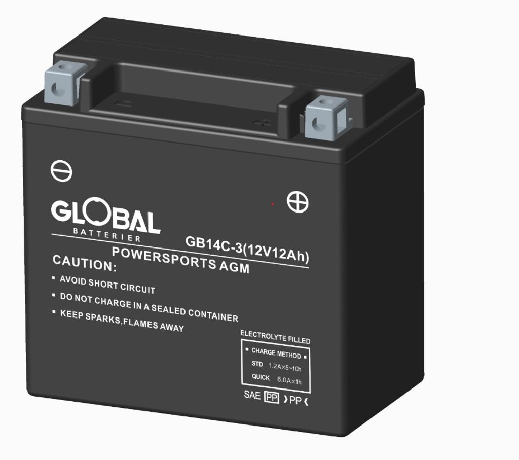 Global 12V GB14A-3 MC-batteri 12Ah 134 x 89 x 167 mm