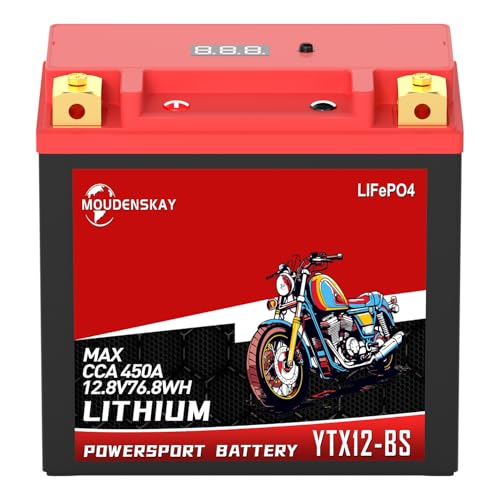 MOUDENSKAY Litium motorcykelbatteri 12 V litium YTX12-BS Powersports batteri med BMS och display 76,8 WH 12,8 V 6 Ah 380–450CCA LiFePO4 motorcykel startbatterier för motorcyklar, ATV, UTV