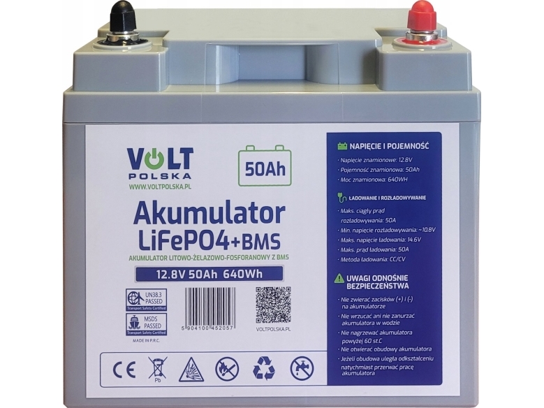 Volt Lifepo4-Batteri 12V 50 Ah (50A)