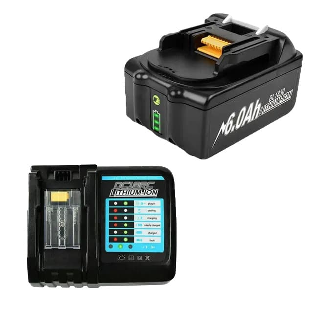 Makita 18V batteri, 6Ah kapacitet, Kompatibel med LXT BL1860B, 6A-laddare
