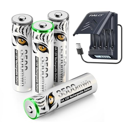 Mspalocell 3500mWh 1,5V litiumbatteri AA laddningsbart med laddare, 1,2V Ni-MH/1,5V litium AA batteri snabbladdare, inbyggd USB-kabel LCD intelligent laddare, 4 st AA-batterier
