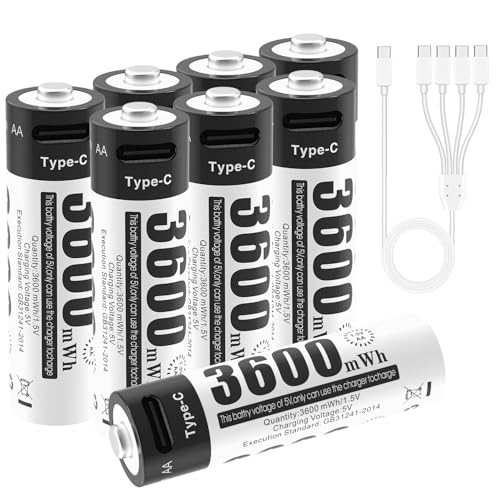 Uppladdningsbart 1,5 V AA-batteri, uppladdningsbart litiumjonbatteri med 3 600 mWh och 1 200 lång cykel, 8-pack AA litium jonbatterier för fjärrkontrollkontroll, motoriska leksaker, sladdlösa