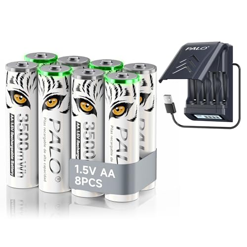 Mspalocell 3500mWh 1,5V litiumbatteri AA laddningsbart med laddare, 1,2V Ni-MH/1,5V litium AA batteri snabbladdare, inbyggd USB-kabel LCD intelligent laddare, 8 st AA-batterier