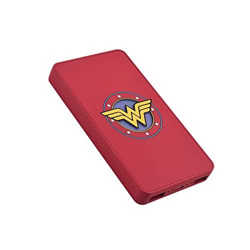 EMTEC Externt batteri 5000 mAh, Power Bank U900, bärbart reservbatteri, 2 USB-A-portar: 5V/2A, Micro-USB, laddningskontroll och överhettningsskydd, DC Comics Wonderwoman, röd