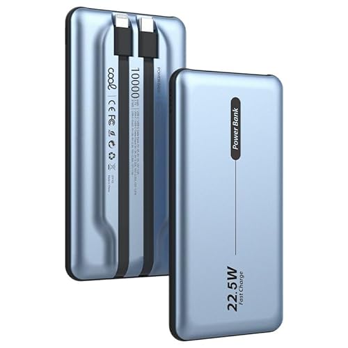 Externa Universal Power Bank-batteri 10 000 mAh PD 22,5 W (2 kablar) blå
