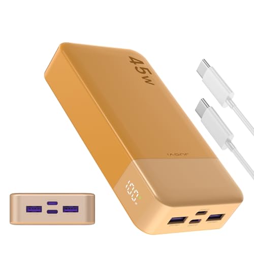 JUOVI Snabbt externt batteri, 45 w externt batteri, Power Bank 2 0000 mah, externt batteri USB C laddning, PD och QC Charge 4-portar, med LED-display för bärbar dator, Samsung iPhone 16 15 Pro (orange