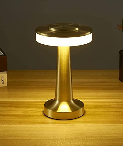 Batteri SladdlöS Bordslampa, Med Peksensor Uppladdningsbar Led Bordslampa 3 FäRger AvbläNdande, BäRbar Nattlampa FöR Bar Restaurang Sovrum,Brass