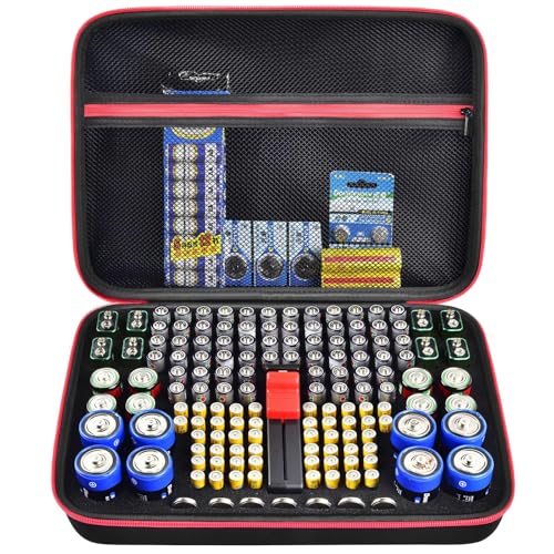 Grapsa Batterilåda batteri förvaringslåda, batterier arrangör väska med batteritestare rymmer 150 batterier olika storlekar för AA AAA 9 V C D litium 3V LR44 CR2032 CR1632 (endast låda)