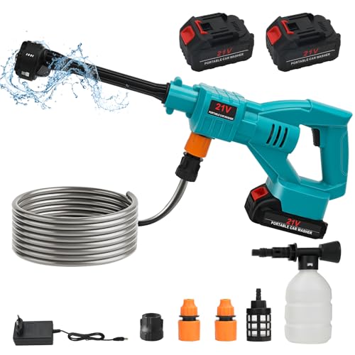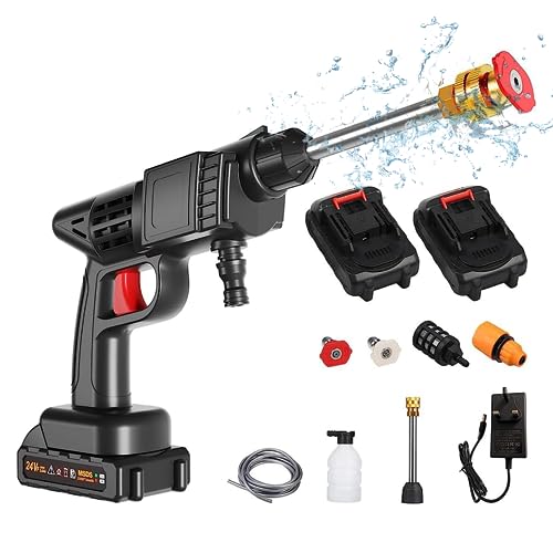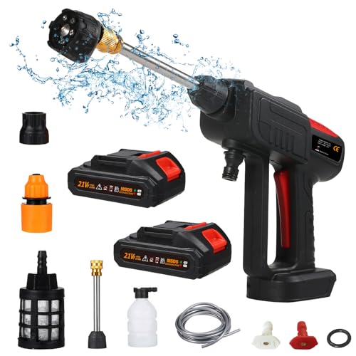 Mulcort Sladdlös högtryckstvätt, bärbar 50PSI högtryckstvätt med batteri och laddare 24 V 1500 mAh batteri elektrisk högtryckstvätt för biltvätt, vattna blommor