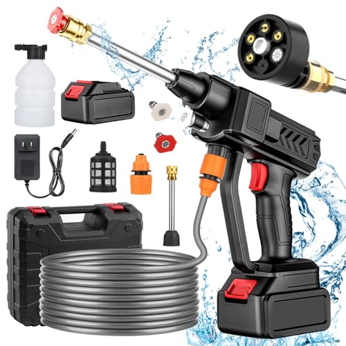 Batteridriven högtryckstvätt – max 35 bar mobil högtryckstvätt med 2 x 6 000 mAh batteri – bärbar högtryckspistol med 5 m slang för bil, terrass, trädgård, staket, pool
