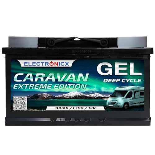 Electronicx CARAVAN EXTREME EDITION 100Ah / C100 / 12V GEL-förbrukningsbatteri – 100 Ah – 12 Volt batteri för husbil, van, båt, marin, solenergi – underhållsfritt & robust – 278×175×190 mm