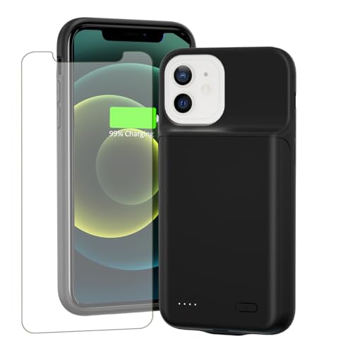 HUOBAO Batterifodral för iPhone 12 Mini, [5000mAh] laddningsfodral för iPhone, skyddande bärbart laddningsfodral, uppladdningsbart utökat batteri för iPhone 12 Mini (5,4 tum)