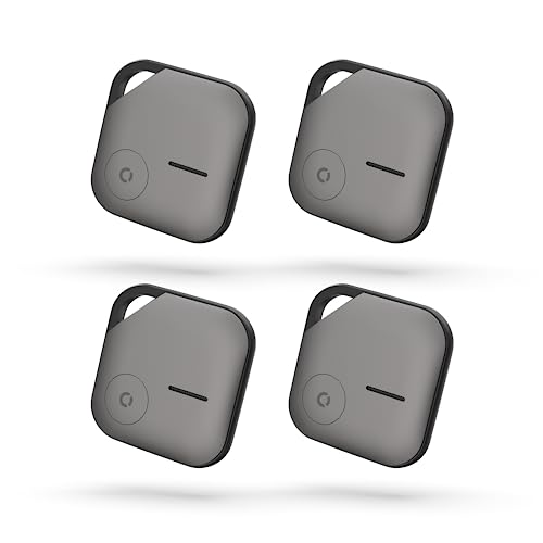 Set med 4 x Echo Smart Grey, synligt märke på ett kort, pipljud, utbytbart batteri med 1 års batteritid, enkel installation utan app på din iPhone, fungerar med Apple Find My