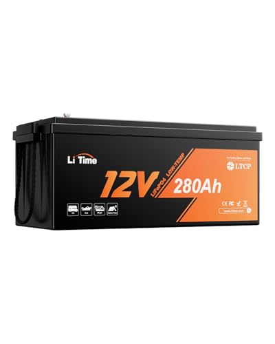 LiTime 12V 280Ah Batteriets Lifepo4 med Skydd mot Låg Temperatur, LiFePO4 Batteri med 200A BMS, LiFePO4 Batteri är Idealiska för Solenergisystem, Husvagnar, Camping, Båtar och Energilagring i Hemmet