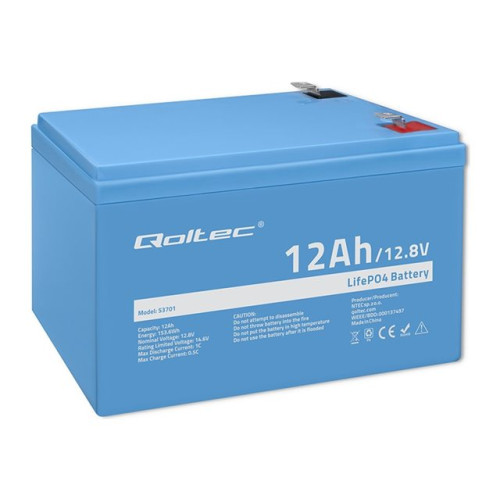 Qoltec - batteri - 12,8V, BMS - LiFePO4 - 12 Ah - 153.6 Wh