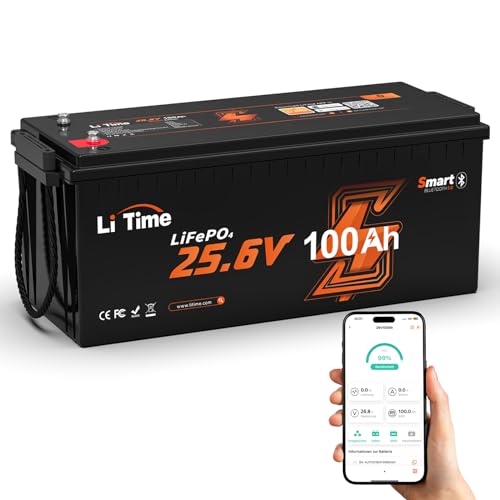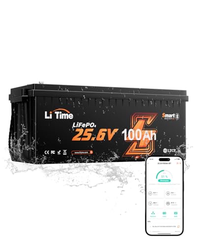 LiTime 24V 100Ah LiFePO4 Batteri med Bluetooth och Lågtemperaturskydd, Litiumjonbatteri med 100A BMS, Max Kapacitet 2560Wh, 4000+ Cykler, Alternativ till Blybatterier, Batteriets Lifepo4 för RV