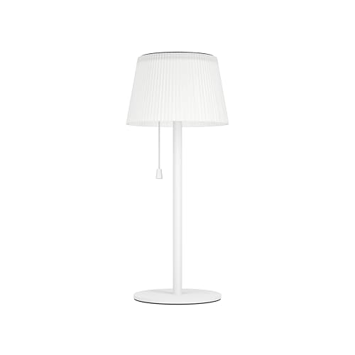 EGLO Scordiano Soldriven utomhus-bordslampa, med batteri, med dragströmbrytare, trådlös solcellslampa för utomhusbruk, vitt stål och vit plast, varmvitt till kallt vitt ljus, IP44