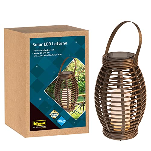 Idena 31243 – Solar LED-lykta med varmt vitt ljus, tillverkad av svart plast med handtag och LED-ljus, inkl. solmodul och batteri, ca 26 x 16 cm stor, för dekorativ belysning utomhus