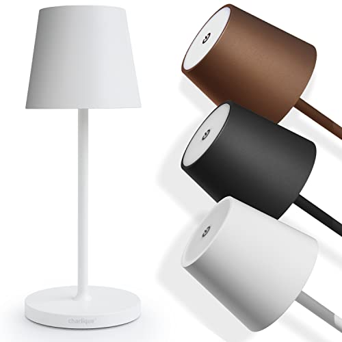 charlique® Dinner Light mini - liten LED bordslampa i vit, uppladdningsbar med starkt batteri | bärbar beröringslampa med USB C laddningsport | brinner i upp till 48 timmar | varmt ljus