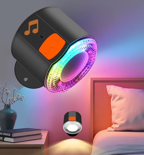 Vägglampa med Bluetooth-högtalare och batteri, trådlös LED-vägglampa med RGB-ljus, 3 färgtemperaturer, dimbar 1–100 %, 360° roterbar, USB-C laddningsbar, lämplig för sovrum, läsning, camping, bärbar
