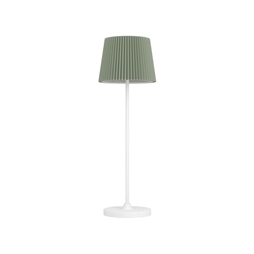 EGLO Leonero LED-bordslampa, med batteri, trådlös, grön och vit nattbordslampa i metall med veckad lampskärm, touch-dimbar, USB-uppladdningsbar, varmvitt till neutralt vitt ljus