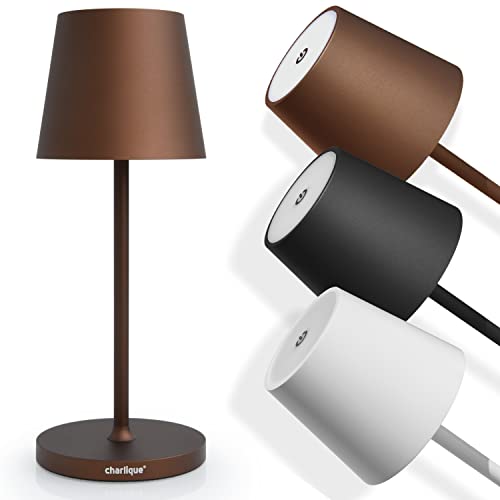 charlique® Dinner Light mini – LED bordslampa i brun med USB C uppladdningsbar | med kraftfullt batteri, ljus i upp till 48 timmar | beröringslampa dimbar för inomhus och utomhus