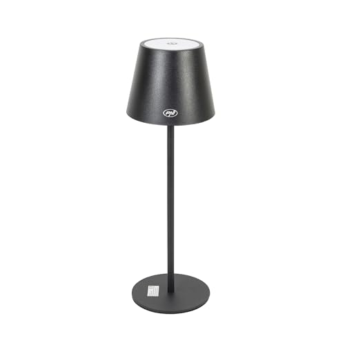 PNI LT04B bordslampa med LED 2,5W, batteri 1200 mAh, laddning via USB-C, 150 lumen, varmvitt ljus 3000K, pekknapp, dimbar, färg Svart