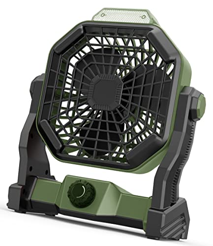 Melchioni Family | Bärbar fläkt för uppladdningsbar camping med ljus, 5200mAh inbyggt batteri uppladdningsbart USB-kabel, 3 nivåer av LED-belysning, ∅12 cm, 3 hastigheter, 180° rotation