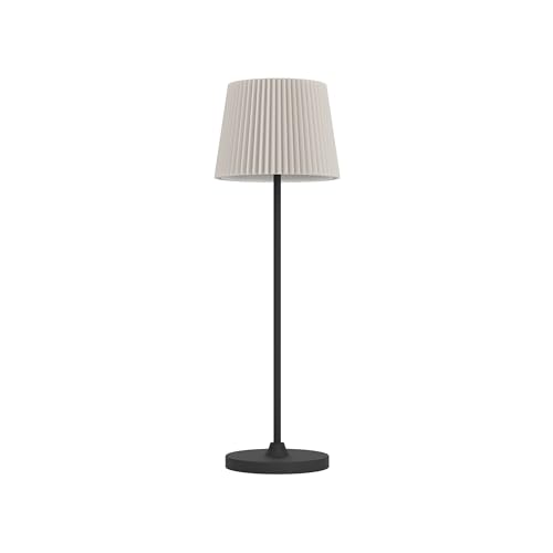 EGLO Leonero LED-bordslampa, med batteri, trådlös, svart och beige nattbordslampa i metall med veckad lampskärm, touch-dimbar, USB-uppladdningsbar, varmvitt till neutralt vitt ljus