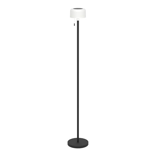 EGLO Scordiano Golvlampa, med batteri och dragströmbrytare, trådlös solcellslampa för inom- och utomhusbruk, svart stål, vit plast, varmvitt till kallt vitt ljus, IP44