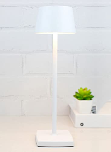 Sladdlös Bordslampa, 6000mAh Uppladdningsbart Batteri, IP54 Vattentät, All Aluminiumlegering, Tryck på Dimning, Varmt ljus, för Inomhus Utomhus Restaurang Buffé Bar Kafé, Vit