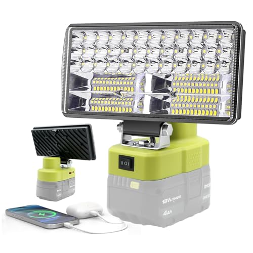 Arbet kompatibel med RYOBI 18 V-batteri, 6 000 LM 40 W trådlöst LED-ljus utomhus arbetsplats lampor ficklampa, för vandring bil respir läger garage nödbelysning (batterier ingår inte)
