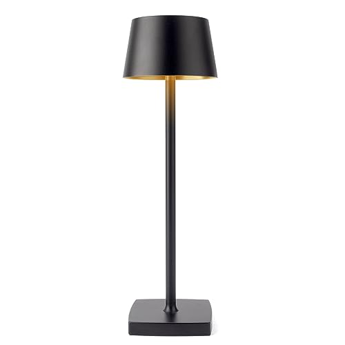 Sladdlös Bordslampa, 6000mAh Uppladdningsbart Batteri, IP54 Vattentät, All Aluminiumlegering, Tryck på Dimning, Varmt ljus, för Inomhus Utomhus Restaurang Buffé Bar Kafé, Svart