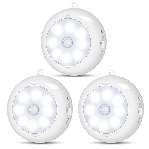 BLS rörelsesensor lampa inomhus, AA83 AA batteridrivna lampor, underskåp ljus, batteri LED-ljus, garderobslampor, klistra på trådlösa puck lampor för hall, trappa, källare, kök (3-pack)
