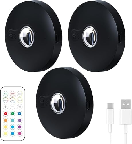 Onumii Uppladdningsbar LED-lampa kök trådlöst underskåp skåp belysning LED-spotlight med USB-fjärrkontroll batteri skåp ljus 12 färg dimbar specialbelysning (6 st svart)